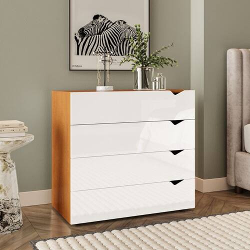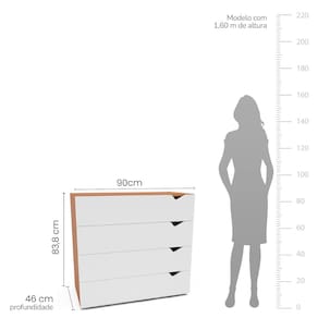 Características: Estrutura MDP Pintura FF/UV 04 Gavetas com corrediças telescópicas Puxadores em cava usinada Peso suportado no Tampo: 20kg Peso suportado na Gaveta: 5kg