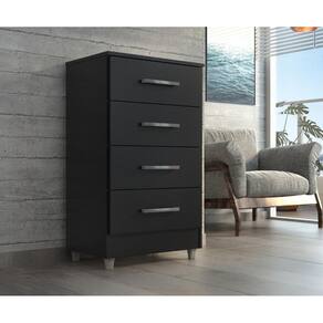 Cômoda 4 Gavetas Preto Onix Flavia Quarta Divisão MoveisDimensões aproximadas: Altura 90 cm x Largura 55 cm x Profundidade 40 cm. Corrediças Metálicas; O móvel suporta pesos de até 7kg em suas gavetas e 20kg no tampo suficiente para acomodar televisores; Possui acabamento Touch Alto-Relevo ou Alto Brilho UV e Semibrilho parte interna; Tem um design moderno que ao mesmo tempo atende muito bem as reais necessidades de uma ou duas pessoas. Além desses detalhes é de fácil montagem. Garantia 90 dias. Ean: 7898375447246
