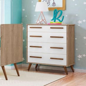 Comoda 4 Gavetas Retro Carvalho Rustico/branco
