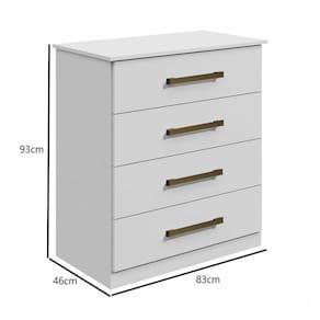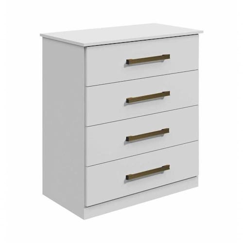 Cômoda 4 Gavetas Rubi Bronze Leifer Móveis Branco Dimensões Altura: 93 cm Largura: 83 cm Profundidade: 46 cm Peso: 26,4 kg