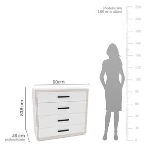 A cômoda 4 portas Valência, da Politorno Móveis, combina elegância, sofisticação e funcionalidade. Com 83,8 cm de altura, 90 cm de largura e 46 cm de profundidade, oferece excelente espaço para organizar roupas e acessórios de forma prática. Fabricada em MDP/MDF, com acabamento em pintura UV e FF, garante alta durabilidade e resistência. O design sofisticado é complementado pelos detalhes usinados, que conferem um toque refinado, e pelos puxadores externos, que facilitam o manuseio. Além disso, as gavetas contam com corrediças telescópicas, proporcionando um deslizamento suave e preciso. Ideal para quem busca qualidade e organização no ambiente. Produto Montado: Sim Acabamento da Gaveta: Pintura UV Acabamento dos Pés: Polipropileno Altura dos Pés: 0,37 cm Altura Máxima dos Pés: 0.3700 Ambiente Principal: Quarto codigo_ean: 7900288112804 Complexidade da Montagem: Média: pode ser montado por mais de uma pessoa e/ou necessite de maior conhecimento para montagem Cor: Branco Cor do Produto: Branco Cor do Puxador: Preto Cor Interna: Branca Escala de Brilho: Semi-Fosco Escala de Brilho da Gaveta: Semi-Fosco Gaveta com Chave: Não Itens Inclusos: 1 Cômoda, Kit de Ferragens e Manual de Montagem. Linha ou Coleção: Valência Manual de Especificação Técnica: https://product-hub-prd.madeiramadeira.com.br/984499/documents/cf04e870-a478-486e-aa71-240234b6dff02804306622417440327334252.pdf Manual de Montagem e Instalação: https://product-hub-prd.madeiramadeira.com.br/984499/documents/bab4c472-ad5d-4f04-8507-4667eca56a732804307622417440327497996.pdf Marca: Politorno Material da Gaveta: MDF/MDP Material do Fundo: MDF/MDP Material do Puxador da Gaveta: MDF Material dos Pés: Plástico Material Principal: MDF/MDP Necessita Montagem: Sim Origem do Produto: Nacional Pés Reguláveis: Não Peso: 24,59 kg Peso Máximo por Gaveta: 5 kg Possui Espelho: Não Possui Nichos: Não Possui Pés: 04 Possui Portas: Não Possui Prateleiras: Não Possui Rodízio: Não Quantidade de Gavetas: 04 Gavetas Recomendações de Uso, Manutenção e Limpeza: Utilize um pano macio umedecido com água e sabão neutro, seguido de pano seco. Não utilize produtos químicos ou abrasivos para limpeza, pois estes danificam o revestimento do móvel. Sapatas Niveladoras: Sim Sistema de Montagem: Cavilha, Parafuso, Minifix e prego Suporta Até (kg): 10 kg Tipo de Cômoda: Adulto Tipo de Corrediça da Gaveta: Metálica Telescópica Tipo de Puxador da Gaveta: Externo undefined: 984507