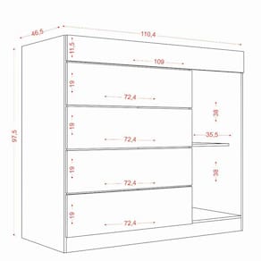 Dimensões do Cômoda 5 Gavetas 1 Porta c/ Porta Joias Oliveira: