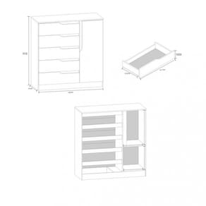 Características: Estrutura em MDP 5 Gavetas 1 Porta Corrediça metálica Acabamento UV 1 Prateleira interna