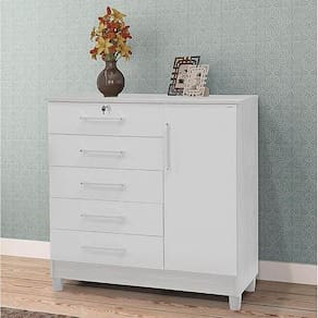 Cômoda 5 Gavetas 1 Porta Vitória Rud RackA Cômoda 5 Gavetas 1 Porta Vitória Rud Rack foi desenvolvida para pessoas de bom gosto e que precisam de móveis funcionais e de custo benefício. Esta cômoda possui cinco amplas gavetas fáceis de abrir, uma porta lateral com prateleira interna para que os pertences sejam bem acomodados. Aproveite!Medidas:Altura: 93 cmLargura: 99 cmProfundidade: 47 cm– Produto em MDP e MDF– 05 Gavetas com corrediças metalicas– Prateleira Interna– 04 pés em pvcInformações importantes:Os objetos que ambientam as fotos não acompanham o produto.Não nos responsabilizamos pela montagem/instalação dos produtos.Montagens, desmontagens e instalações são responsabilidades do cliente.Indicamos que contrate uma empresa de montagem ou um montador de sua confiança.Além disso, favor verificar se os pés e acessórios estão dentro do forro inferior do produto.Em suma, todas as informações divulgadas sobre o produto são de responsabilidade do Fabricante.Fique atento, nossas cores podem sofrer alterações dependendo do seu monitor ou tela do seu celular.