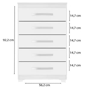 Apresentamos a Cômoda 5 Gavetas Moden, uma móvel elegante e funcional para complementar seu ambiente com estilo e organização. Estrutura em MDP de 12mm. Gavetas espaçosas equipadas com corrediças telescópicas, garantindo um deslizamento suave e silencioso. Seus puxadores em ABS adicionam um toque sofisticado, enquanto os pés de plástico proporcionam estabilidade e resistência. Além disso, a pintura UV texturizada oferece um acabamento impecável, realçando a durabilidade e beleza do móvel. Ideal para quem busca praticidade sem abrir mão do design. Este móvel chegará na sua casa separado em 01 volume.