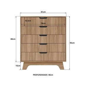 Com 5 gavetas espaçosas, ela oferece um amplo espaço interno, permitindo armazenar roupas, acessórios, documentos e outros itens de forma organizada e acessível. Seu design inteligente garante pde no dia a dia, tornando a arrumação muito mais fácil.