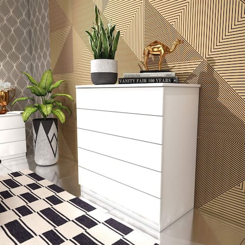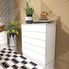 Com a cômoda Florença seu quarto estará completo e seus pertences bem organizados. Produzida inteiramente em MDF, possui 5 gavetas com corrediças metálicas e tampo de 25mm. Acabamento resistente com impressão UV e verniz de alta duração. Acabamento da Gaveta: Pintura Complexidade da Montagem: Baixa: pode ser montado por uma pessoa sozinha Cor Interna: Neve Escala de Brilho: Semi-Brilho Escala de Brilho da Gaveta: Semi-Brilho Gaveta com Chave: Não Itens Inclusos: 1 Cômoda e Manual de Montagem. Linha ou Coleção: Florença Manual de Montagem e Instalação: https://product-hub-prd.madeiramadeira.com.br/538075/documents/8abd64cf-3483-4b2d-9b6d-01d35fc2987femademontagemcomodaflorena.pdf Material da Gaveta: MDF Material do Fundo: MDF Material Principal: MDF Necessita Montagem: Sim Origem do Produto: Nacional Peso: 33,34 kg Peso Máximo por Gaveta: 10 kg Possui Espelho: Não Possui Possui Pés: Não Possui Portas: Não Possui Prateleiras: Não Recomendações de Uso, Manutenção e Limpeza: Não colocar o produto em lugar úmido, não arrastar, limpar somente com pano macio e seco, não expor o produto a incidência de luz solar, não colocar peso superior ao indicado. Sapatas Niveladoras: Não Sistema de Montagem: Parafusos e cavilhas Suporta Até (kg): 50 kg Tipo de Corrediça da Gaveta: Metálica Telescópica Tipo de Puxador da Gaveta: Embutido