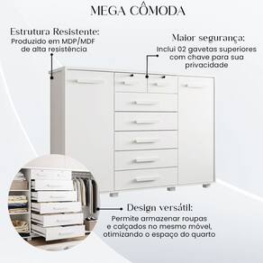 A Mega Cômoda foi desenvolvida para proporcionar máxima organização com um design moderno e funcional. Produzida em MDP/MDF de alta resistência, garante durabilidade e excelente desempenho no uso diário.
