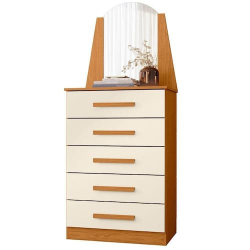 Cômoda 5 Gavetas Com Espelho Mdp Valentina Cinamomo/off White Procurando um lugar melhor e mais espaçoso para guardar suas roupas ou toalhas entre outros objetos de seu quarto? Projetada para atender às suas necessidades de armazenamento, esta peça combina funcionalidade com estilo sofisticado. Dê um toque de elegância e praticidade ao seu espaço com nossa cômoda de 5 gavetas. Dimensões da Cômoda Valentina: - Altura: 151 cm - Largura: 63 cm - Profundidade: 40 cm