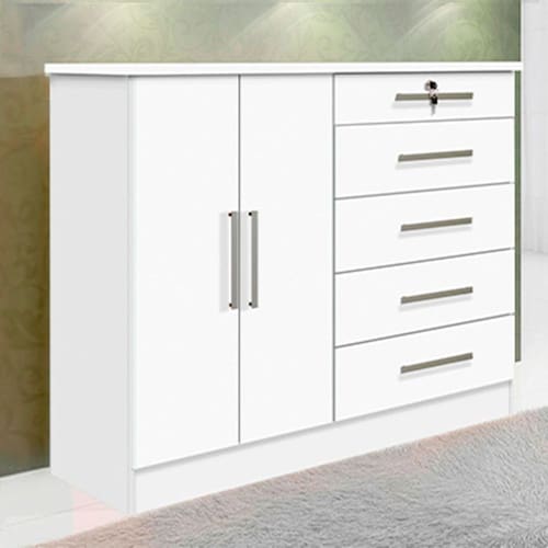 Cômoda 5 Gavetas Com Sapateira Para Quarto A Cômoda com Sapateira 5 Gavetas - Modelo Cronus é perfeito para a organização de suas roupas. Além disso, possui uma Sapateira com amplo espaço, produzida em Madeira MDP e tampo de MDF. Então, compre agora sua Cômoda. MEDIDAS: Altura: 1.10mLargura: 1,36mProfundidade: 0,45m CARACTERÍSTICAS: