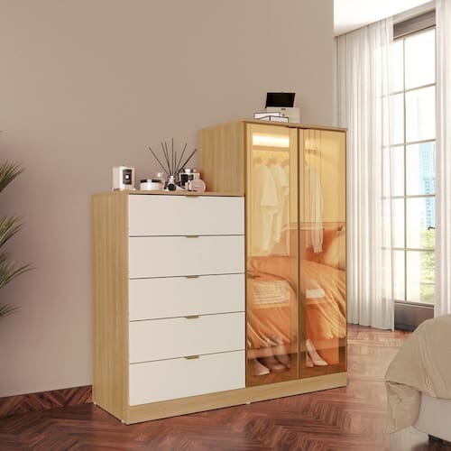 A cômoda Bella além de belíssima, é ideal para organização do seu quarto e de suas roupas. Ela possui 5 gavetas com corrediças telescópicas que proporciona mais abertura e resistência ao móvel, e 2 portas com Vidro Reflecta, que deixa o ambiente muito mais Charmoso, além do Led que acompanha o móvel. Produto Montado: Sim Acabamento da Gaveta: Pintura UV Acabamento da Porta: Polipropileno Acabamento da Prateleira: Finish Foil Ambiente Principal: Quarto codigo_ean: 7900288273260 Complexidade da Montagem: Média: pode ser montado por mais de uma pessoa e/ou necessite de maior conhecimento para montagem Cor: Âmbar/Off White Cor do Produto: Ambar/Off White Cor do Puxador: Dourado Cor Interna: Tauari Ambar Escala de Brilho: Fosco Escala de Brilho da Gaveta: Fosco Escala de Brilho da Porta: Fosco Escala de Brilho da Prateleira: Fosco Gaveta com Chave: Não Itens Inclusos: 1 Cômoda, Kit Ferragens e Manual de Montagem Linha ou Coleção: Bella Manual de Montagem e Instalação: https://product-hub-prd.madeiramadeira.com.br/848170235/documents/e1ba8e7e-0deb-477e-95db-036b4843386a3290390491717612372714418.pdf Marca: Moveis Sul Material da Gaveta: MDP Material da Porta: Vidro Material da Prateleira: MDP Material do Fundo: MDF Material do Puxador da Gaveta: Plástico Material do Puxador da Porta: Plástico Material Principal: MDP Necessita Montagem: Sim Origem do Produto: Nacional Peso: 52,37 kg Peso Máximo por Gaveta: 5 kg Peso Máximo por Prateleira: 5 kg Porta Janelada: Não Possui Espelho: Não Possui Nichos: Não Possui Pés: Não Possui Portas: Sim Possui Prateleiras: Sim Quantidade de Gavetas: 05 Gavetas Quantidade de Prateleiras: 01 Prateleira Recomendações de Uso, Manutenção e Limpeza: Para limpeza utilize pano macio, seco ou ligeiramente umedecido com água. Não utilize sapólios, polidores e ou produtos que contenham carga abrasiva, para evitar danos ao produto. Evitar que o móvel fique exposto a luz solar direta, ou em ambientes de umidade e calor excessivo. Não colocar carga excessiva de peso nas gavetas e prateleiras, para evitar acidentes ou danos ao produto. O móvel deverá ficar nivelado, desta forma, as gavetas e as portas terão o bom funcionamento, evite arrastá-los, isso pode danificar o móvel. Sapatas Niveladoras: Não Sistema de Montagem: Cavilhas, parafusos e cola Suporta Até (kg): 40 kg Tipo de Cômoda: Adulto Tipo de Corrediça da Gaveta: Metálica Telescópica Tipo de Dobradiça/Corrediça da Porta: Aço Tipo de Porta: Bater Tipo de Puxador da Gaveta: Externo Tipo de Puxador da Porta: Externo Marca: Não Informado