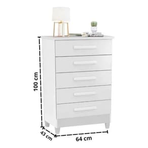Com 5 gavetas deslizantes, equipadas com corrediças metálicas, você terá espaço de sobra para organizar suas roupas e pertences. Sua estrutura firme e resistente proporciona a garantia de um móvel durável. A pintura U.V de alta qualidade ressalta a beleza do acabamento, trazendo elegância para o seu ambiente. O amplo espaço interno oferece soluções inteligentes para a organização. E com os puxadores ergonômicos, o manuseio se torna ainda mais confortável e fácil. Renove sua decoração com um toque de sofisticação e eficiência. Aproveite agora mesmo!