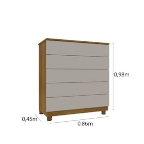 Com a cômoda Premium seu quarto estará completo e seus pertences bem organizados. Produzida inteiramente em MDF, possui 5 gavetas com corrediças metálicas, tampo de 25mm e espaço sapateira. Acabamento resistente com impressão UV e verniz de alta duração. Acabamento da Gaveta: Pintura Acabamento dos Pés: Pintura Altura dos Pés: 6 Ambiente Principal: Quarto Complexidade da Montagem: Baixa: pode ser montado por uma pessoa sozinha Cor: Cinamomo/Off White Cor do Produto: Cinamomo/Off White Escala de Brilho: Semi-Brilho Escala de Brilho da Gaveta: Fosco Gaveta com Chave: Não Itens Inclusos: 1 Cômoda, Kit Ferragens e Manual de Montagem. Linha ou Coleção: Premium Manual de Montagem e Instalação: https://cdn2.madeiramadeira.com.br/atributo/tcil-moveis/467578-esquema-de-montagem-comoda-premium.pdf Material da Gaveta: MDF Material do Fundo: MDF Material dos Pés: PVC Material Principal: MDF Necessita Montagem: Sim Origem do Produto: Nacional Pés Reguláveis: Não Peso: 33.695 Peso Máximo por Gaveta: 10 Possui Espelho: Não Possui Nichos: Não Possui Pés: 04 Possui Portas: Não Possui Prateleiras: Não Possui Rodízio: Não Recomendações de Uso, Manutenção e Limpeza: Não colocar o produto em lugar úmido, não arrastar, limpar somente com pano macio e seco, não expor o produto a incidência de luz solar, não colocar peso superior ao indicado. Sapatas Niveladoras: Não Sistema de Montagem: Parafusos, Cavilhas e Pregos Suporta Até (kg): 50 Tipo de Corrediça da Gaveta: Metálica Simples Tipo de Puxador da Gaveta: Embutido