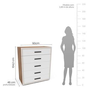 A cômoda 5 gavetas Valência, da Politorno Móveis, é a escolha ideal para quem busca sofisticação, funcionalidade e qualidade. Com 104,2 cm de altura, 90 cm de largura e 46 cm de profundidade, oferece excelente espaço para organizar roupas e acessórios com praticidade. Produzida em MDP/MDF, possui acabamento em pintura UV e FF, garantindo alta durabilidade e resistência. Seu design elegante se destaca pelos detalhes usinados, que agregam um toque refinado ao móvel. Os puxadores externos proporcionam um manuseio confortável, enquanto as corrediças telescópicas garantem um deslizamento suave e preciso das gavetas. Perfeita para um ambiente organizado e sofisticado. Produto Montado: Sim Acabamento da Gaveta: Pintura UV Acabamento dos Pés: Polipropileno Altura dos Pés: 0,37 cm Altura Máxima dos Pés: 0.3700 Ambiente Principal: Quarto codigo_ean: 7900288112736 Complexidade da Montagem: Média: pode ser montado por mais de uma pessoa e/ou necessite de maior conhecimento para montagem Cor: Freijó/Branco Cor do Produto: Freijó/Branco Cor do Puxador: Preto Cor Interna: Freijó Escala de Brilho: Semi-Fosco Escala de Brilho da Gaveta: Semi-Fosco Gaveta com Chave: Não Itens Inclusos: 1 Cômoda, Kit de Ferragens e Manual de Montagem. Linha ou Coleção: Valência Manual de Especificação Técnica: https://product-hub-prd.madeiramadeira.com.br/984495/documents/f58fed35-c5e2-4aeb-b1a9-e2cae66a49b02804262622417440321062279.pdf Manual de Montagem e Instalação: https://product-hub-prd.madeiramadeira.com.br/984495/documents/6baf65c7-3d91-43db-8180-3d01f3804bc12804266622417440321581508.pdf Marca: Politorno Material da Gaveta: MDF/MDP Material do Fundo: MDF/MDP Material do Puxador da Gaveta: MDF Material dos Pés: Plástico Material Principal: MDF/MDP Necessita Montagem: Sim Origem do Produto: Nacional Pés Reguláveis: Não Peso: 26,86 kg Peso Máximo por Gaveta: 5 kg Possui Espelho: Não Possui Nichos: Não Possui Pés: 04 Possui Portas: Não Possui Prateleiras: Não Possui Rodízio: Não Quantidade de Gavetas: 05 Gavetas Recomendações de Uso, Manutenção e Limpeza: Utilize um pano macio umedecido com água e sabão neutro, seguido de pano seco. Não utilize produtos químicos ou abrasivos para limpeza, pois estes danificam o revestimento do móvel. Sapatas Niveladoras: Sim Sistema de Montagem: Cavilha, Parafuso, Minifix e prego Suporta Até (kg): 10 kg Tipo de Cômoda: Adulto Tipo de Corrediça da Gaveta: Metálica Telescópica Tipo de Puxador da Gaveta: Externo undefined: 984498