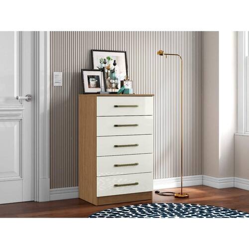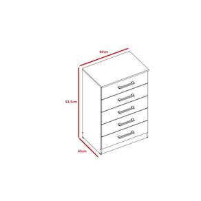 Cômoda 05 gavs. Produzido em MDP 12mm e 15mm de espessura, proporcionando resistência e durabilidade. Amplo espaço interno, garantindo maior firmeza ao móvel. Puxadores de Plástico dando maior resistência. Acabamento em verniz alto brilho, garantindo a conservação do móvel, além de manter o brilho constante oferece ao móvel beleza, resistência e durabilidade prolongando a vida útil do produto.