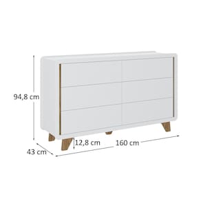 A Cômoda Mabel combina design contemporâneo e marcenaria de alto padrão, ideal para quartos modernos e elegantes. Fabricada em 100% MDF BP de 15cm, com fundo de gaveta em MDF 6cm branco duas faces e fitas de borda em PVC 0,45cm, oferece durabilidade e acabamento digno de móveis planejados.