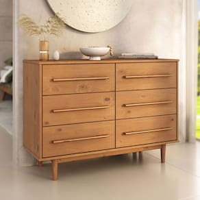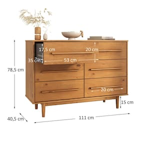 A Cômoda Grande Quarto de Casal 6 Gavetas Madeira Maciça Tecca traz o equilíbrio ideal entre design minimalista e funcionalidade. Seu acabamento em tom castanho valoriza os veios naturais da madeira, criando um móvel de presença marcante e sofisticada.