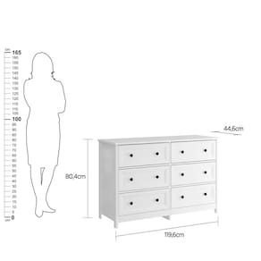 Seu dormitório ficará muito mais bonito e organizado com a Cômoda 6 Gavetas Ditália. As gavetas do móvel são simplesmente perfeitas para acomodar pequenos e médios objetos. O tampo do móvel suporta até 30 kg e as gavetas suportam até 10 kg cada. O móvel possui design exclusivo inspirado no estilo Clássico Americano.