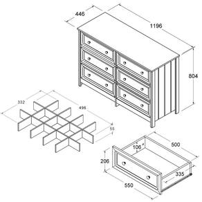 APÓS O PEDIDO FINALIZADO, NÃO ACEITAMOS TROCA DE COR DO PRODUTO E NEM ALTERAÇÃO DE ENDEREÇO DE ENTREGA.Seu dormitório ficará muito mais bonito e organizado com a Cômoda 6 Gavetas Ditália. As gavetas do móvel são simplesmente perfeitas para acomodar pequenos e médios objetos. O tampo do móvel suporta até 30 kg e as gavetas suportam até 10 kg cada. O móvel possui design exclusivo inspirado no estilo Clássico Americano. CARACTERÍSTICAS- Revestimento em impressão ultravioleta (UV) com acabamento semibrilho.- O tampo é produzido em MDP 15 mm e as laterais e molduras em MDF.- O tampo suporta até 30 kg.- Peso suportado por gaveta é de 10 kg.- Possui gavetas com corrediças metálicas.- Possui divisor de joias/objetos com 15 posiçõesINFORMAÇÕES TÉCNICAS- Peso: 48,00 kg- Altura: 80,4 cm- Largura: 119,6 cm- Profundidade: 44,6 cm- Acompanha kit de ferragens e manual de montagem (montagem não inclusa).- Este produto é vendido desmontado em 1 volume, embalado em caixa de papelão com isopor nas laterais e revestidos com plásticos termoencolhível.- A fixação é feita por Minifix e parafusos. Acompanha kit antitombamento, por questões de segurança é necessário fixar o produto na parede.PERGUNTAS FREQUENTES1 - O produto é entregue montado?Resposta: Nossos produtos são entregues desmontados. Os móveis são acompanhados de todos componentes necessários (manual de montagem, parafusos, pregos, puxadores e etc..) para que possam ser montados com facilidade.2 - Vocês oferecem serviço de montagem?Resposta: Não disponibilizamos este serviço.3 - Os produtos são novos?Resposta: Sim, trabalhamos apenas com produtos novos.4 - Vocês atendem todos os estados do Brasil?Resposta: Sim, enviamos nossos produtos para todo o Brasil.5 - O divisor de objetos jóias/acompanha o produto?Resposta: Sim, o divisor de joias/objetos acompanha o produto.LIMPEZALimpar utilizando apenas pano umedecido com água, nunca utilizar abrasivos ou esponjas de aço.GARANTIAGarantia de 3 Meses (contra defeito de fabricação).OBSERVAÇÕES- As dimensões estão expressas na seguinte forma: Altura x Largura x Profundidade em cm- Montar o móvel deitado de costas.- Forrar o chão com o papelão das embalagens, aconselhamos a ser feita por um profissional, não expor o móvel a fontes de calor ou de umidade.- As imagens indicam uma sugestão de uso e são apenas ilustrativas, os objetos decorativos não estão inclusos.