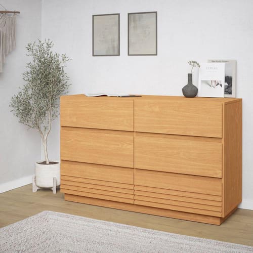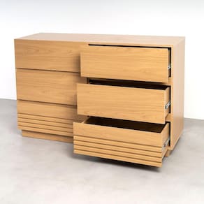A Cômoda Samambaia tem um visual moderno e prático, com detalhes ripados. Produto 100% MDF com corrediça telescópica. Gavetas possuem corrediça telescópica e as últimas também possuem frente usinada. Acabamento da Gaveta: Pintura UV Acabamento dos Pés: Pintura Altura dos Pés: 6 cm Ambiente Principal: Quarto Complexidade da Montagem: Média: pode ser montado por mais de uma pessoa e/ou necessite de maior conhecimento para montagem Cor: Carvalho Cor do Produto: Carvalho Cor Interna: Carvalho Escala de Brilho: Fosco Escala de Brilho da Gaveta: Fosco Gaveta com Chave: Não Informações Complementares: Corrediças telescópicas, gavetas com frente usinada possuem contra frente Itens Inclusos: 1 Cômoda, Kit de Ferragens e Manual de Montagem Linha ou Coleção: Samambaia Manual de Montagem e Instalação: https://cdn2.madeiramadeira.com.br/prd/moveis-robel/942050-CmodaSamambaia-ManualdeMontagem.pdf Material da Gaveta: MDF Material do Fundo: MDF Material dos Pés: MDF Material Principal: MDF Necessita Montagem: Sim Origem do Produto: Nacional Pés Reguláveis: Não Peso: 66,04 kg Peso Máximo por Gaveta: 6 kg Possui Espelho: Não Possui Nichos: Não Possui Pés: Rodapé Possui Portas: Não Possui Prateleiras: Não Possui Rodízio: Não Recomendações de Uso, Manutenção e Limpeza: Retirar o pó com flanela ou pano seco. Não utilizar produtos químicos ou abrasivos. Sapatas Niveladoras: Sim Sistema de Montagem: Cavilha, parafuso e minifix Suporta Até (kg): 36 kg Tipo de Corrediça da Gaveta: Metálica Telescópica Tipo de Puxador da Gaveta: Embutido