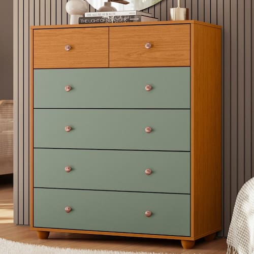 A Cômoda Vittoria é um produto com design contemporâneo, que mistura a nostalgia do design clássico. Seus puxadores arredondados e com acabamento dão um charme a mais ao produto. Possui 06 gavetas com corrediças telescópicas, trava de sustentação nas gavetas maiores, caixaria e frentes de gavetas em 15 mm,.
