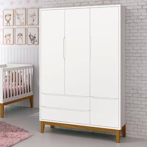 Guarda Roupa Infantil 3 Portas New Classic Branco com Pés Madeira - Reller