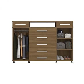 Comoda 7 Gavetas 2 Portas com Rodizios London Demobile que oferece capacidade extrema de utilidade e organizacao devido ao grande numero de gavetas e compartimento com portas, sendo para sapatos e com bastao para cabides. Tampo reforcado de 25mm para tvs de maior dimensao e rodizios para a movimentacao facilitada do movel no ambiente