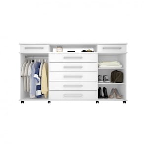Comoda 7 Gavetas 2 Portas com Rodizios London Demobile que oferece capacidade extrema de utilidade e organizacao devido ao grande numero de gavetas e compartimento com portas, sendo para sapatos e com bastao para cabides. Tampo reforcado de 25mm para tvs de maior dimensao e rodizios para a movimentacao facilitada do movel no ambiente