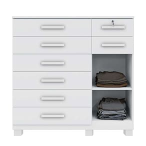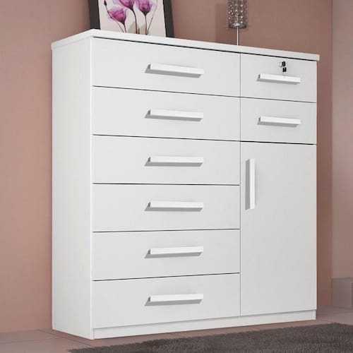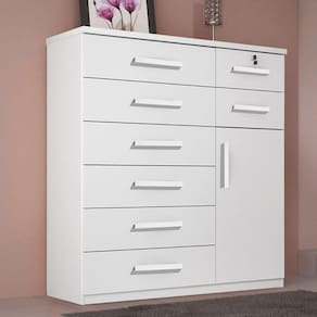 Altura 133 cm Largura 124 cm Profundidade 45 cm Peso 73 Kg Matéria Prima MDP Tipo de Pintura UV Prazo de Garantia 3 meses contra defeitos de fabricação Quantidade de Gavetas 8 Gavetas Tipo de Corrediças Telescópicas Gavetas com Chave 1 Possui Portas 1 Necessita de Montagem Sim Dica de Montagem Recomendamos que a montagem seja feita por profissional de sua confiança Recomendações de Limpeza Utilizar pano macio, seco ou ligeiramente umedecido com água Informações Os objetos que ambientam as fotos não acompanham o produto