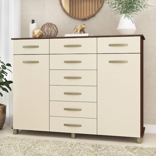 Desenvolvida para quem não abre mão de ter seus pertences muito bem organizados, a cômoda Malibu é o item que estava faltando em seu dormitório! Confira os principais diferencias: - Excelente qualidade e acabamento - Perfeito espaço interno para acomodação de roupas, acessórios e demais objetos - 2 Portas - 8 Gavetas - Prateleira interna - Cabideiro de PVC - Corrediças e dobradiças metálicas - Pés Plástico 6cm - Puxadores e Pés cor Bronze - Amplo espaço. Tamanho total externo: Altura: 112cm Largura: 150cm Profundidade: 47cm Leve para sua residência esse excelente produto! Acabamento da Gaveta: Finish Foil Acabamento da Porta: Finish Foil Acabamento da Prateleira: Finish Foil Altura dos Pés: 6 Ambiente Principal: Quarto Complexidade da Montagem: Baixa: pode ser montado por uma pessoa sozinha Cor: Rústico/Champagne Cor do Produto: Rustico/Champagne Cor Interna: Rustico Escala de Brilho: Semi-Brilho Escala de Brilho da Gaveta: Semi-Brilho Escala de Brilho da Porta: Semi-Brilho Escala de Brilho da Prateleira: Semi-Brilho Gaveta com Chave: Não Itens Inclusos: 1 Cômoda, kit ferragens e manual de montagem Manual de Montagem e Instalação: https://cdn2.madeiramadeira.com.br/atributo/fellicci/1309960-co180-comoda-malibu-8-gavetas-cabide-e-pes.pdf Material da Gaveta: MDP Material da Porta: MDP Material da Prateleira: MDP Material do Fundo: MDP Material do Puxador da Gaveta: Plástico Material do Puxador da Porta: Plástico Material dos Pés: Plástico Material Principal: MDP Necessita Montagem: Sim Origem do Produto: Nacional Pés Reguláveis: Não Peso: 61 Peso Máximo por Gaveta: 3 Peso Máximo por Prateleira: 2 Possui Espelho: Não Possui Nichos: Não Possui Pés: 06 Possui Portas: 02 Possui Prateleiras: 02 Possui Rodízio: Não Recomendações de Uso, Manutenção e Limpeza: Pano levemente umedecido com água Sapatas Niveladoras: Não Sistema de Montagem: Parafusos Suporta Até (kg): 30 Tipo de Corrediça da Gaveta: Metálica Simples Tipo de Dobradiça/Corrediça da Porta: Metálica Tipo de Porta: Bater Tipo de Puxador da Gaveta: Externo Tipo de Puxador da Porta: Externo