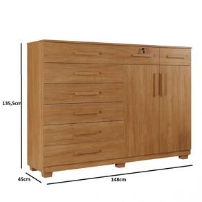 A Cômoda Triunfo vem com a proposta de completa seu quarto com muito charme e beleza, possui 8 gavetas bem espaçosa sendo 1 com chave com corrediças telescópica que dá muita suavidade e resistência, ainda conta com 2 portas, tem 2 prateleira interna que constitui uma sapateira bem definida, além de possuir tampo de 15 mm que garante uma vida útil.
