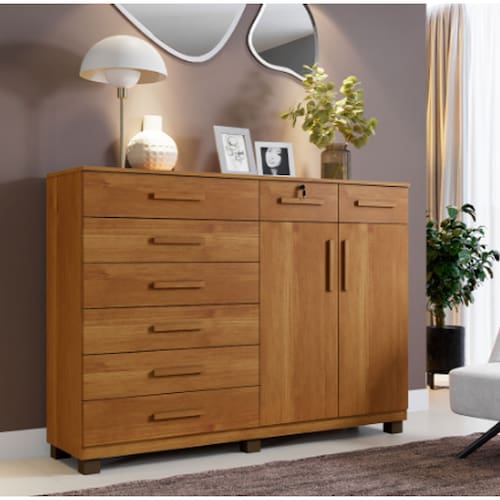 Cômoda 8 Gavetas 2 Portas New Triunfo Benetil Móveis - Cinamomo - Off White