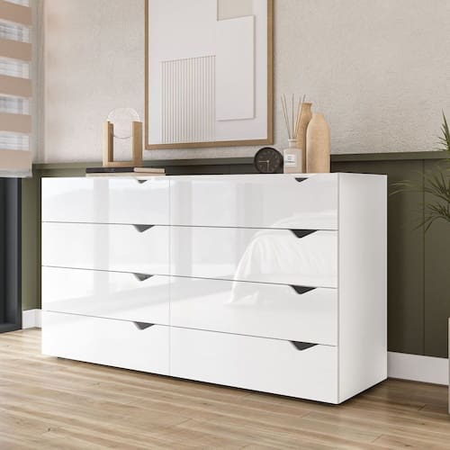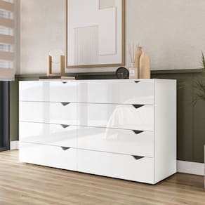 A cômoda 8 gavetas Porto, da Politorno Móveis, combina design moderno, elegante e sofisticado, trazendo um toque de requinte para qualquer ambiente. Fabricada em MDP/MDF, possui acabamento em pintura UV e FF, garantindo maior durabilidade e resistência. Seus puxadores embutidos conferem um visual clean e sofisticado, enquanto as corrediças telescópicas proporcionam um deslizamento suave das gavetas. Com dimensões de 83,5 cm de altura, 150 cm de largura e 46 cm de profundidade, oferece amplo espaço para organização, sendo ideal para quartos e closets. De alta qualidade, essa cômoda alia funcionalidade e estilo para um ambiente bem estruturado. Produto Montado: Sim Acabamento da Gaveta: Pintura UV Acabamento dos Pés: Poliéster Altura dos Pés: 0,37 cm Altura Máxima dos Pés: 0.3700 Ambiente Principal: Quarto codigo_ean: 7900288108029 Complexidade da Montagem: Média: pode ser montado por mais de uma pessoa e/ou necessite de maior conhecimento para montagem Cor: Branco Cor do Produto: Branco Cor Interna: Branco Escala de Brilho: Semi-Fosco Escala de Brilho da Gaveta: Semi-Fosco Gaveta com Chave: Não Itens Inclusos: 1 Cômoda, Kit Ferragens e Manual de Montagem Linha ou Coleção: Porto Manual de Montagem e Instalação: https://product-hub-prd.madeiramadeira.com.br/983921/documents/0314952c-91f7-4d55-99c4-743728739b332781114622417436216591693.pdf Marca: Politorno Material da Gaveta: MDF/MDP Material do Fundo: MDF/MDP Material dos Pés: Plástico Material Principal: MDF/MDP Necessita Montagem: Sim Origem do Produto: Nacional Pés Reguláveis: Não Peso: 33,96 kg Peso Máximo por Gaveta: 5 kg Possui Espelho: Não Possui Nichos: Não Possui Pés: 06 Possui Portas: Não Possui Prateleiras: Não Possui Rodízio: Não Quantidade de Gavetas: 08 Gavetas Recomendações de Uso, Manutenção e Limpeza: Utilize um pano macio umedecido com água e sabão neutro, seguido de pano seco. Não utilize produtos químicos ou abrasivos para limpeza, pois estes danificam o revestimento do móvel. Sapatas Niveladoras: Sim Sistema de Montagem: Cavilha, Parafuso, Minifix e prego Suporta Até (kg): 60 kg Tipo de Cômoda: Adulto Tipo de Corrediça da Gaveta: Metálica Telescópica Tipo de Puxador da Gaveta: Embutido undefined: 983929