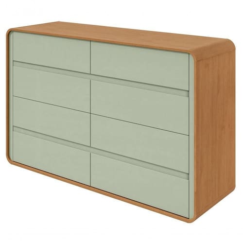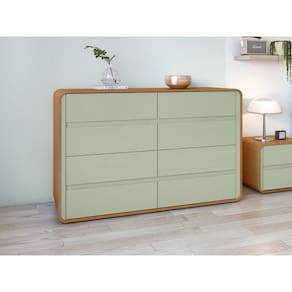 Comoda 8 Gavetas Loop - Lopas Amendoa Clean/salvia A cômoda Loop é uma peça de destaque para qualquer quarto, combinando estilo e funcionalidade de forma harmoniosa. Com um design contemporâneo e linhas elegantes, esta cômoda adiciona um toque de modernidade ao espaço. Equipada com múltiplas gavetas, oferece amplo espaço de armazenamento para roupas e acessórios, mantendo o ambiente organizado. Sua estrutura e acabamento de alta qualidade garantem durabilidade e beleza. A cômoda Loop é uma escolha versátil e sofisticada para complementar a decoração do seu dormitório. Pesos e Dimensões Altura (cm) 96 cm Largura (cm) 152 cm Profundidade (cm) 48 cm Peso (kg) 63,37 kg
