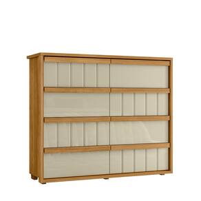 Cômoda 8 Gavetas Madetec Tarsila Corrediça Telescópica Ripado Angular Design Moderno - Cumaru/Opala