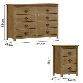 Modelo: Comoda 8 Gv 02 Mesas de Cabeceira 3 Gv Madeira Maciça