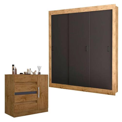 Cômoda 8000 e Guarda Roupa Casal COR2303444 Freijó Carbono Flex - Araplac