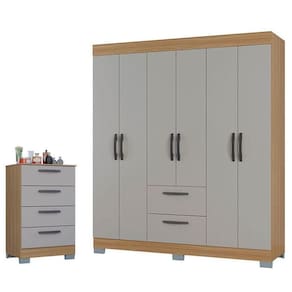 Cômoda 867 4 Gavetas e Guarda Roupa Casal Tóquio 6 Portas Damasco Off White - Poquema
