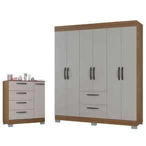 Cômoda 868 4 Gavetas e 1 Porta com Guarda Roupa Casal Tóquio 6 Portas Castanho Off White - Poquema