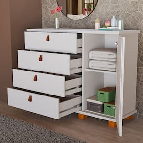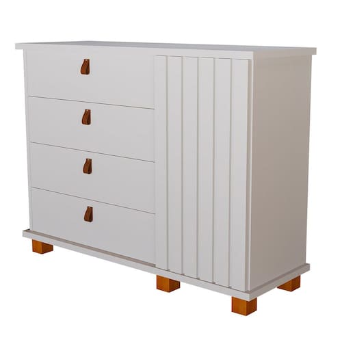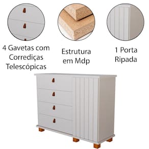 Cômoda Alta 4 Gavetas 1 Porta Ripada Thamirez - Branco