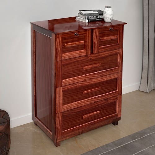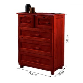 O(a) Cômoda Amazonas Clean 5 Gavetas Marrom - Rodmóveis é produzido em Pinus e HDF na escala de brilho Fosco, e possui um grau de dificuldade de montagem: Médio.