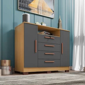 Cômoda Ambiente Mirassol 4 Gavetas 2 Portas Carvalho Americano Grafite - Incorplac
