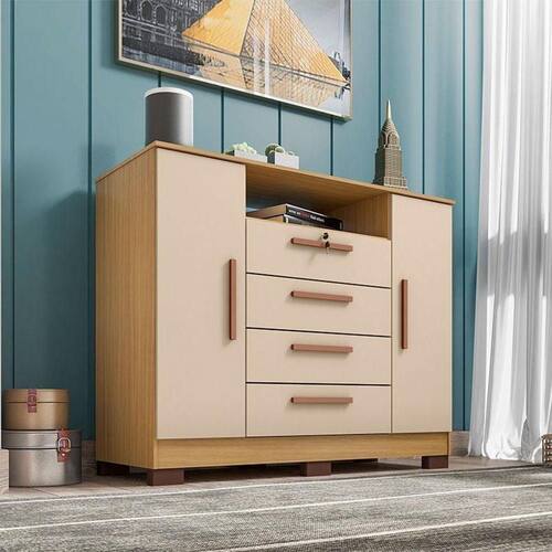 Cômoda Ambiente Mirassol 4 Gavetas 2 Portas Carvalho Americano Off White - Incorplac