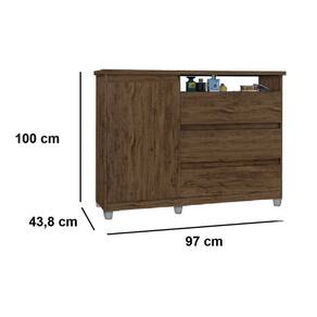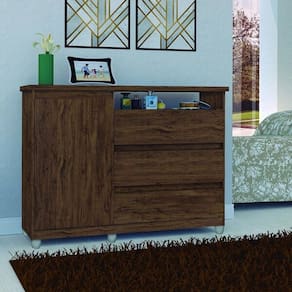 Aliada da organização do seu dormitório, a Cômoda Sky é a peça que faltava para garantir um dia a dia mais otimizado e um ambiente bem decorado. Ela pode ter o uso compartilhado com o do guarda-roupa já que as gavetas se reservam para peças menores e dobráveis, mas se o seu cômodo é pequeno, ela também vai bem como a protagonista para deixar tudo sempre à mão. Ah, além do visual charmoso que ajuda na composição do lar-style, a peça ainda tem um amplo tampo para você dispor cosméticos, enfeites ou outros itens pertinentes à sua rotina. Agora é só combiná-la com o restante do mobiliário e conquistar o quarto dos seus sonhos! Descrição do Tamanho Altura: 100 cm Largura: 97 cm Profundidade: 43,8 cm Características: Número de portas : 1 Porta Número de gavetas: 3 Gavetas Tipo de pé: Fixo de PVC Acabamento: Fosco Material da dobradiça/trilho da porta Metal Material da estrutura MDP Espessura do material da estrutura (mm) 12 Número de nichos: 1 Número de pés 6 Peso suportado máximo (kg) 60 Atenção! - Confira as dimensões deste produto e certifique-se de que passará normalmente por supostos elevadores, portas, escadas e/ou corredores de sua moradia; - As imagens são ilustrativas, eletrodomésticos e demais objetos que compõem o cenário, não fazem parte do anúncio; - Sobre a tonalidade das cores, poderá ocorrer alterações conforme a configuração do seu monitor. - Orientamos que a montagem e instalações do produto seja realizado por um técnico de sua confiança, após a sua entrega. - Oferecemos retirada em nossa loja Saimys Móveis na Av. Ragueb Chohfi, °3411 (08341-420) para não haver custo de envio.