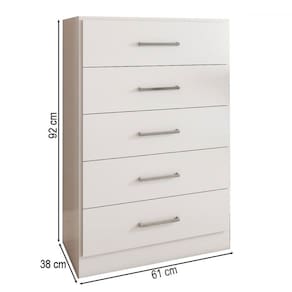 O(a) Cômoda Angra 5 Gavetas Branco - Loja é produzido em MDP na escala de brilho Brilho, e possui um grau de dificuldade de montagem: Médio.