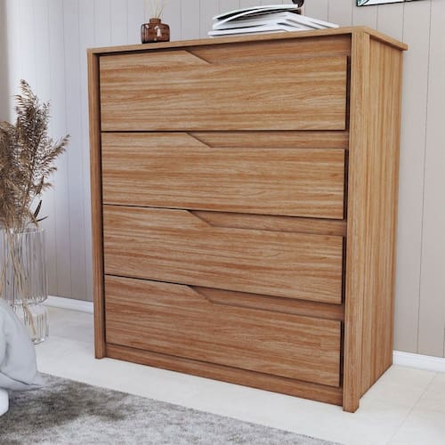 O(a) Cômoda Arabella 4 Gavetas Nogueira Touch - Loja é produzido em MDP na escala de brilho Fosca com Textura e Fosco, e possui um grau de dificuldade de montagem: Médio.