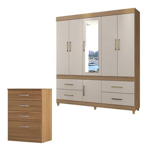 Cômoda Astral e Guarda Roupa Casal Guarujá Amêndola Off White - Demóbile