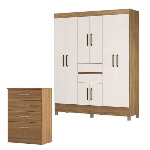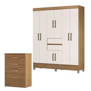 Cômoda Astral e Guarda Roupa Casal Munique Amêndola Off White - Demóbile