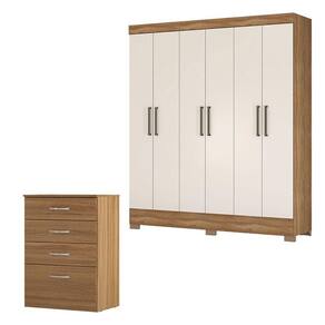 Cômoda Astral e Guarda Roupa Casal Verso Amêndola Off White - Demóbile
