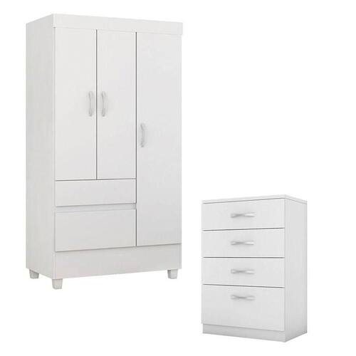 Cômoda Astral e Guarda Roupa Solteiro Wind Branco Flex - Demóbile
